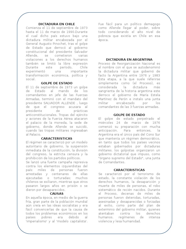 Dictaduras De Chile Y Argentina Relaciones Internacionales Formas De Gobierno